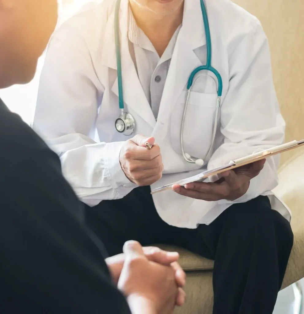 врач подробно расспрашивает о симптомах, проводит осмотр, формирует первичное мнение.